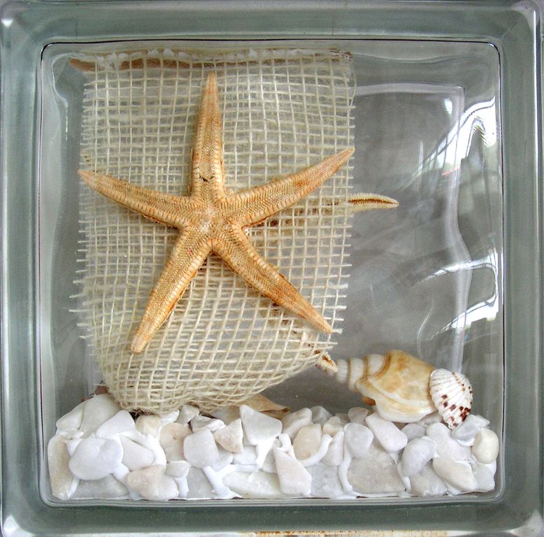 Официальный дистрибьютор Seves Glassblock в Самаре. Стеклоблок декоративный Морская тематика МТ_004 (З) 19х19х8 см купить в Самаре.