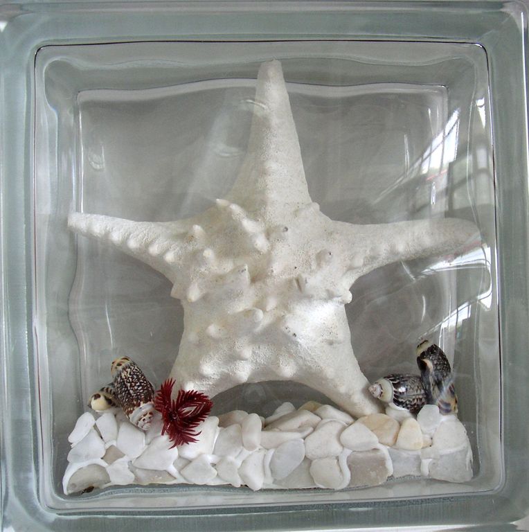 Официальный дистрибьютор Seves Glassblock в Самаре. Стеклоблок декоративный Морская тематика МТ_001 (А) 19х19х8 см. купить в Самаре.
