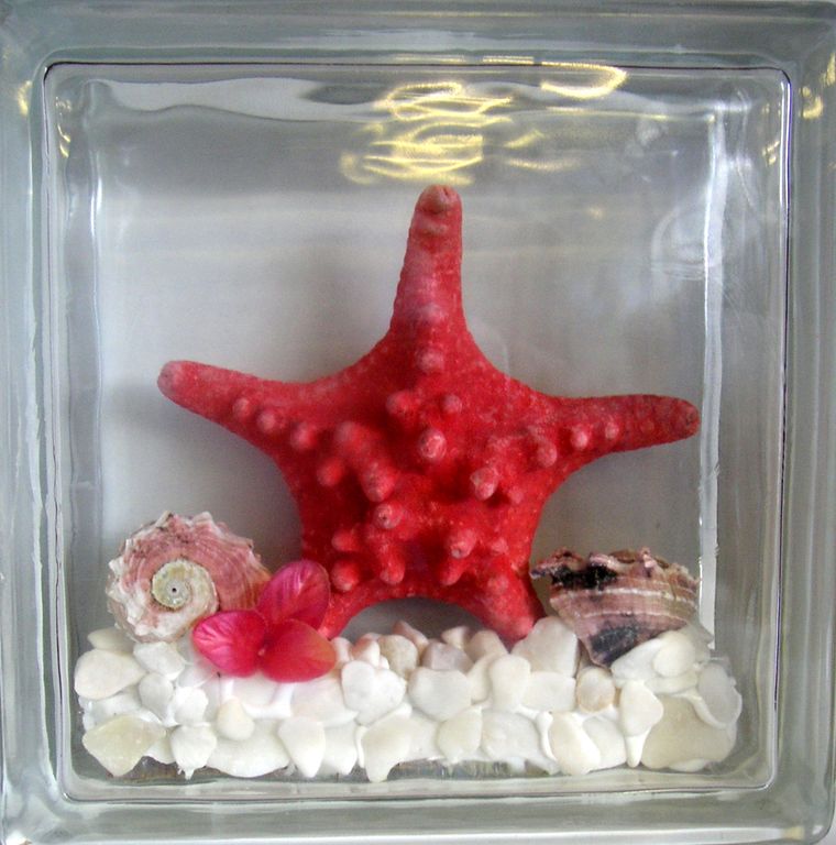 Официальный дистрибьютор Seves Glassblock в Самаре. Стеклоблок декоративный Морская тематика МТ_001 (В) 19х19х8 см купить в Самаре.