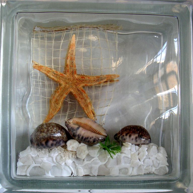 Официальный дистрибьютор Seves Glassblock в Самаре. Стеклоблок декоративный Морская тематика МТ_004 (И) 19х19х8 см купить в Самаре.