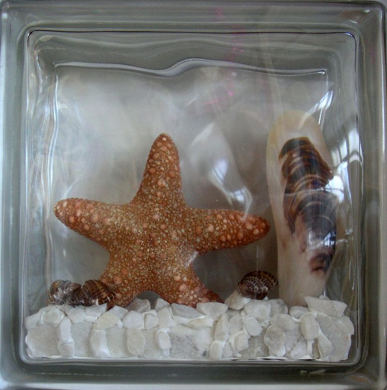 Официальный дистрибьютор Seves Glassblock в Самаре. Стеклоблок декоративный Морская тематика МТ_005 (А) 19х19х8 см купить в Самаре.