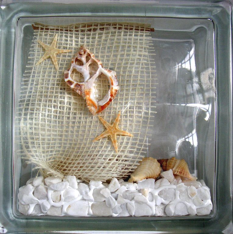 Официальный дистрибьютор Seves Glassblock в Самаре. Стеклоблок декоративный Морская тематика МТ_006 (А) 19х19х8 см купить в Самаре.