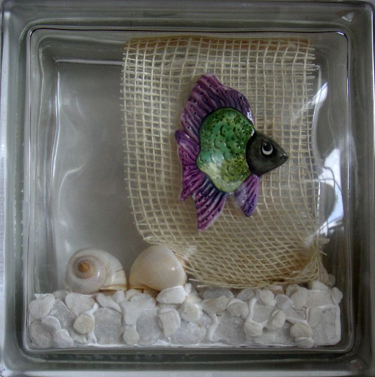 Официальный дистрибьютор Seves Glassblock в Самаре. Стеклоблок декоративный Морская тематика МТ_007 (В) 19х19х8 см купить в Самаре.