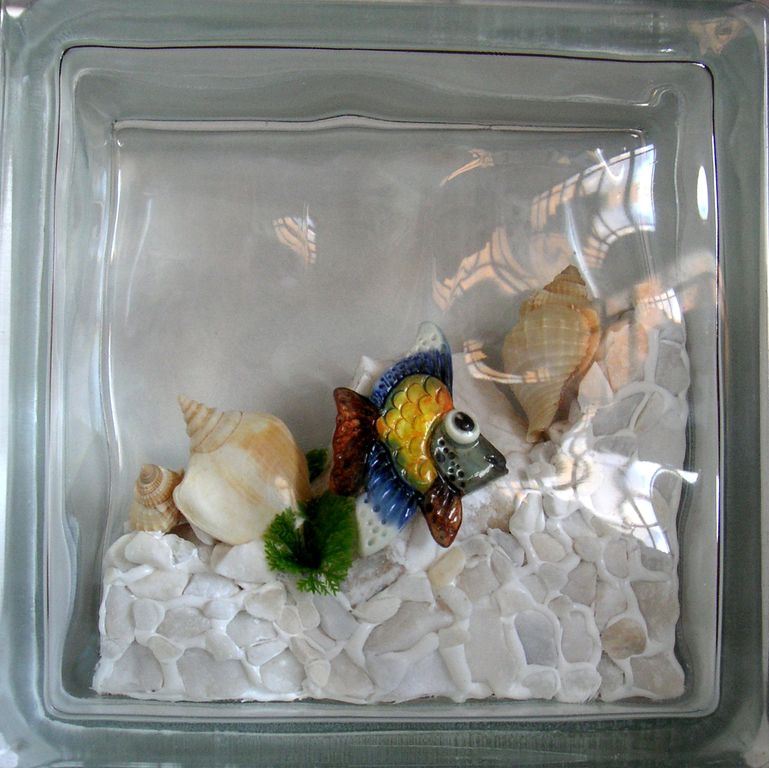Официальный дистрибьютор Seves Glassblock в Самаре. Стеклоблок декоративный Морская тематика МТ_008 (З) 19х19х8 см купить в Самаре.