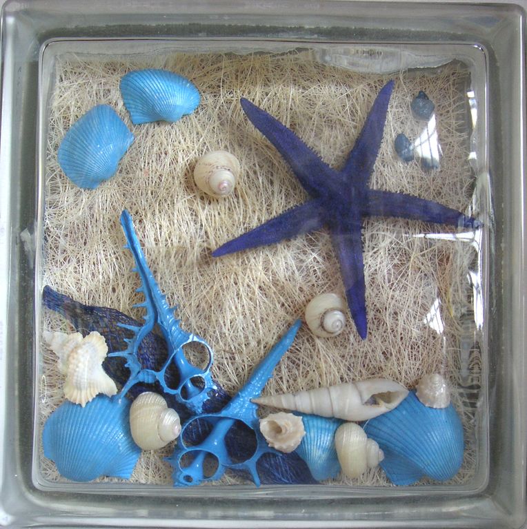 Официальный дистрибьютор Seves Glassblock в Самаре. Стеклоблок декоративный Морская тематика МТ_009 (А) 19х19х8 см купить в Самаре.
