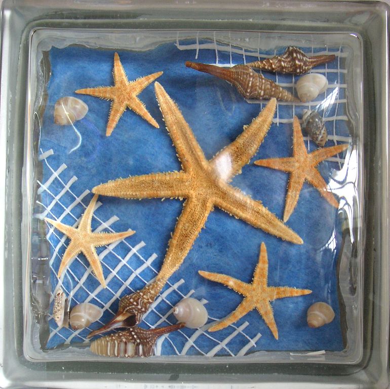 Официальный дистрибьютор Seves Glassblock в Самаре. Стеклоблок декоративный Морская тематика МТ_009 (Д) 19х19х8 см купить в Самаре.