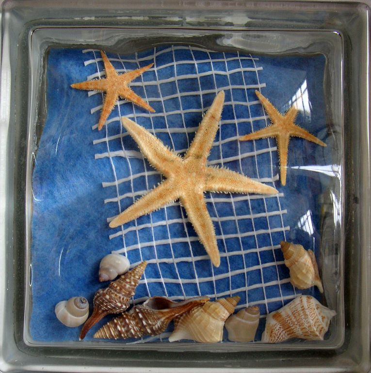 Официальный дистрибьютор Seves Glassblock в Самаре. Стеклоблок декоративный Морская тематика МТ_009 (Е) 19х19х8 см купить в Самаре.