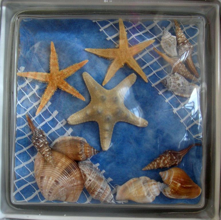 Официальный дистрибьютор Seves Glassblock в Самаре. Стеклоблок декоративный Морская тематика МТ_009 (Ж) 19х19х8 см купить в Самаре.