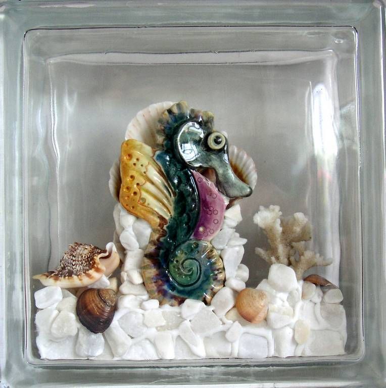 Официальный дистрибьютор Seves Glassblock в Самаре. Стеклоблок декоративный Морская тематика МТ_013 (А) 19х19х8 см купить в Самаре.
